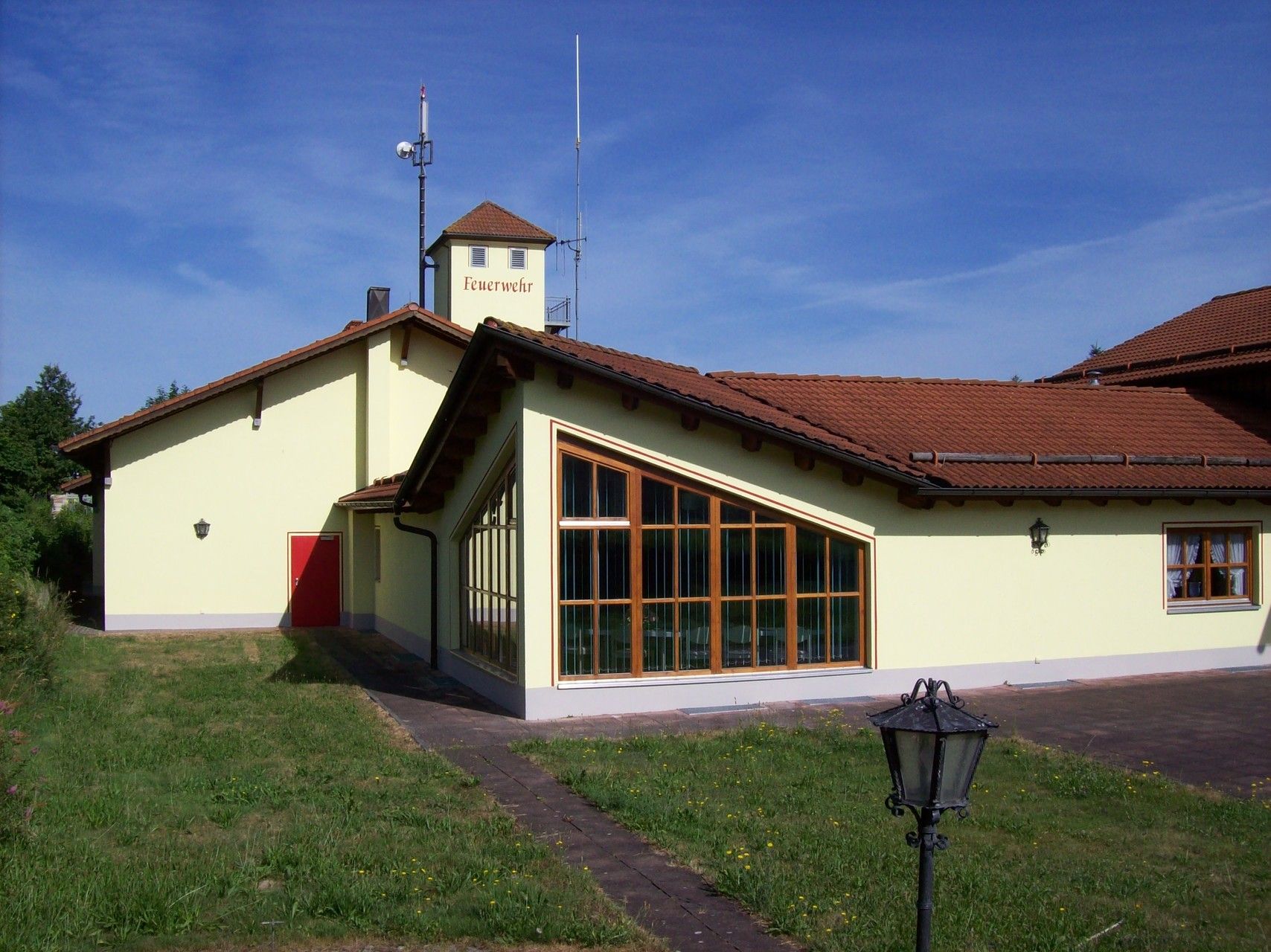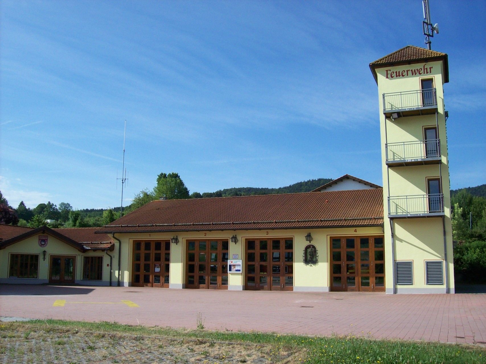 Anbei einige Bilder in das 1995 eingeweihte Feuerwehrzentrum mit angegliederter Bergwachteinsatzzentrale. 2011 erhielt das Gebäude einen neuen Außenanstrich. 2015 folgte die Auffrischung im Innenbereich desweiteren wurde der Parkplatz erweitert
