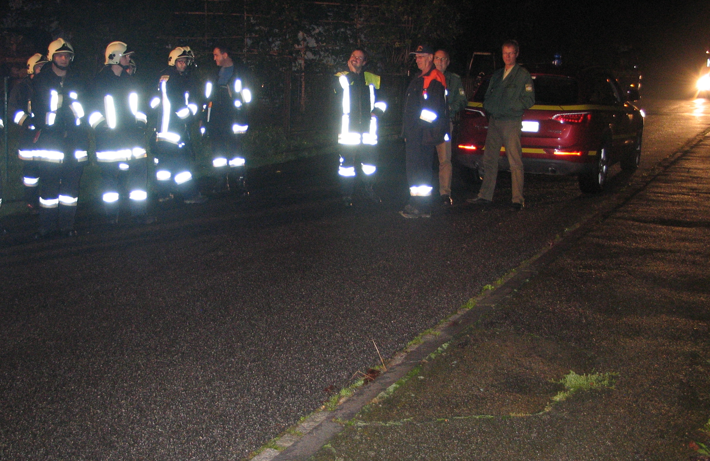 Die Arbeit der Feuerwehr beschränkte sich auf die Erkundung mit dem Ex-Meßgerät/Mehrfach-Gaswarngerät und der Wärmebildkamera im Umfeld der Schadensstelle sowie der Kanalisation und auf Sicherungs- und Beleuchtungsmaßnahmen.