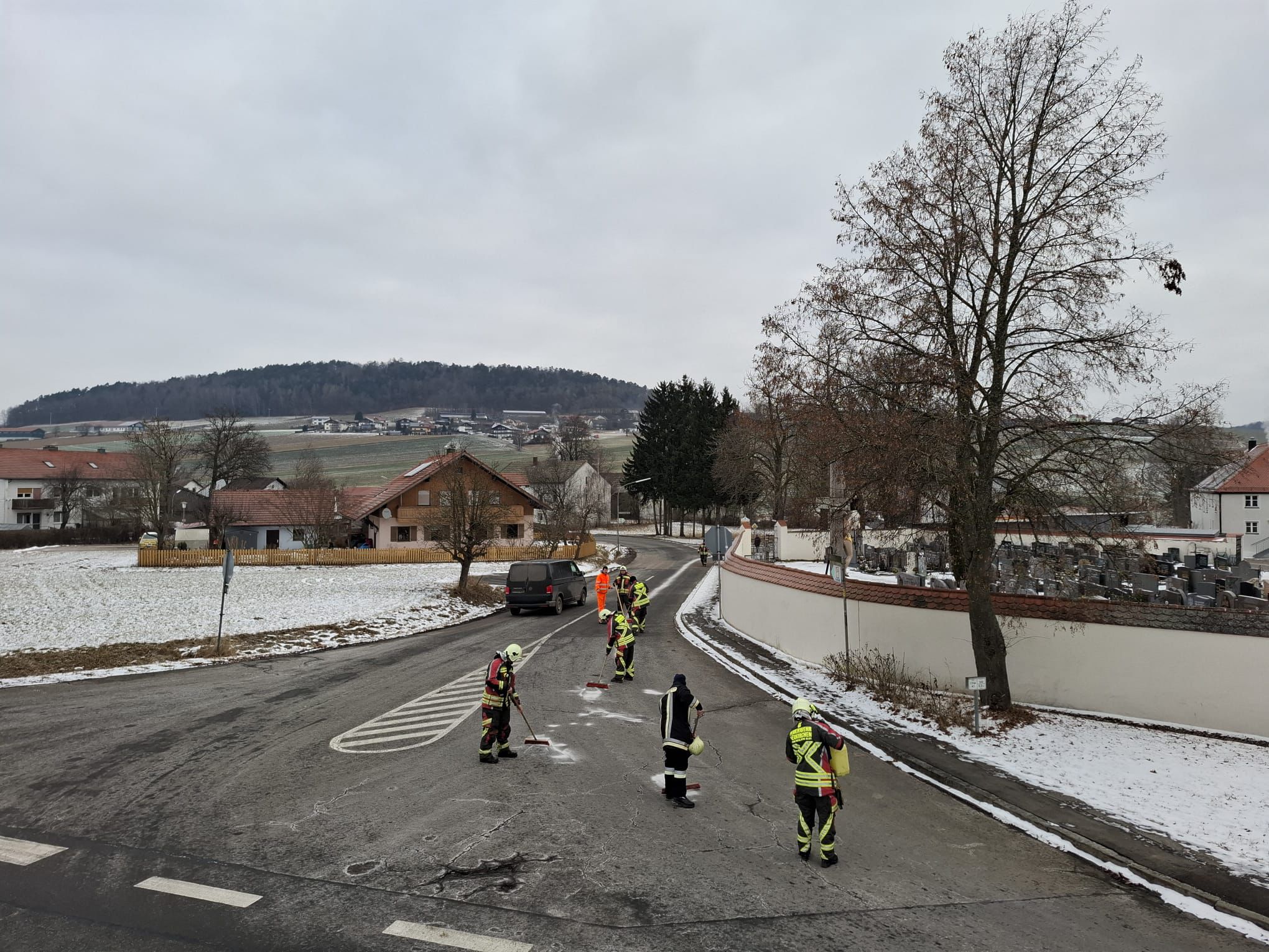 Am Vormittag des 07.01. wurde die Feuerwehr Neukirchen b.Hl.Blut zu einer Ölspur in die Hinterbuchberger Straße alarmiert. Hier kam es zuvor zu einem Motorschaden an einem PKW. Die Fahrbahn wurde von Getriebeteilen gereinigt und die Ölspur mit Bindemittel abgekehrt. Nachdem eine Beschilderung aufgestellt wurde, konnte der Einsatz nach einer halben Stunde beendet werden.