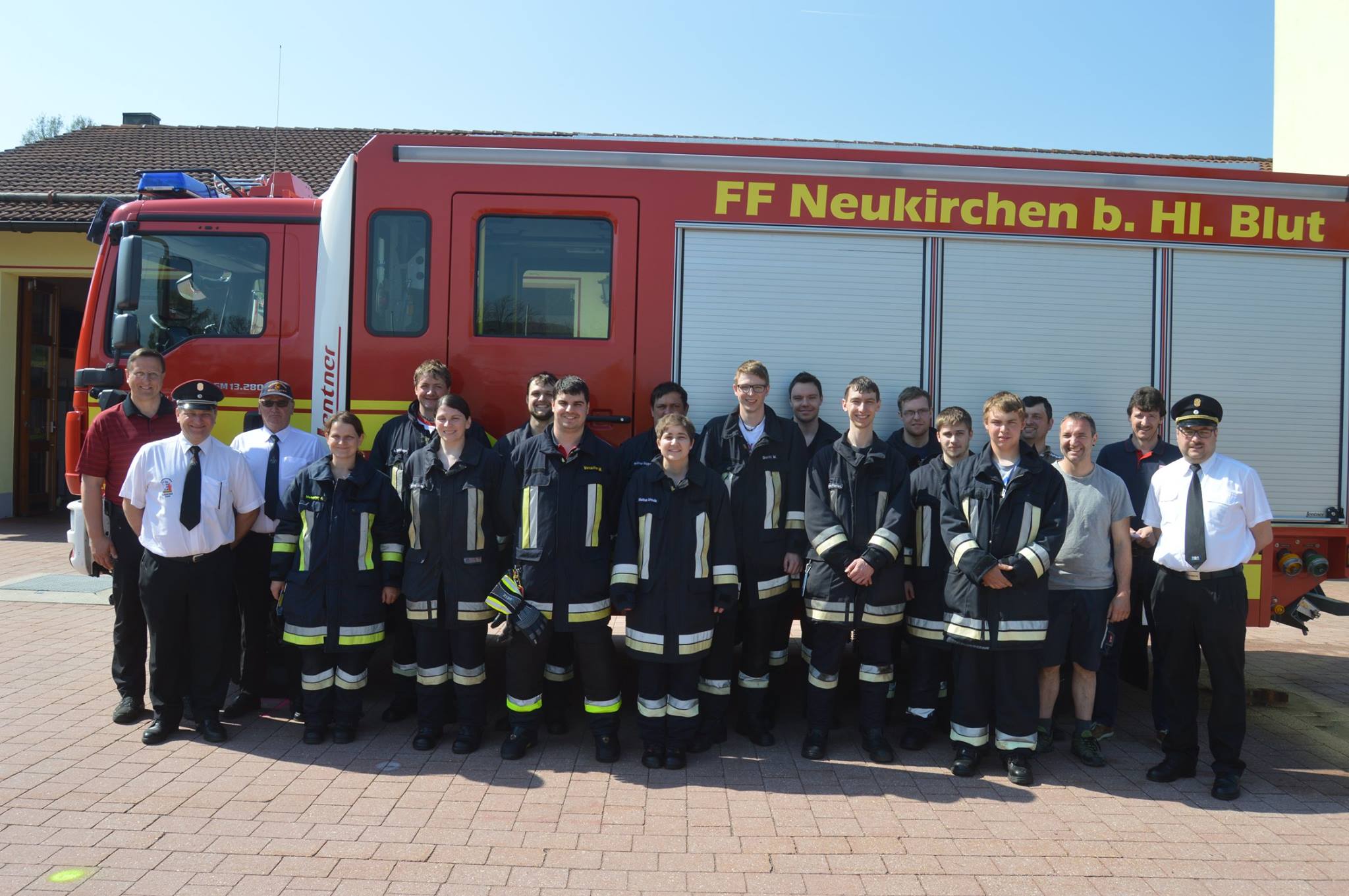 Verschiedene Stufen des Technischen Hilfeleistungsabzeichens meisterten am Sonntagvormittag 17 Mitglieder der Freiwilligen Feuerwehr Neukirchen b. Hl. Blut. Bei dieser Leistungsprüfung müssen verschiedene Aufgaben erfüllt werden wie Fragen aus der Gerätekunde, dem Gefahrstoffbereich, aber auch aus der Ersten Hilfe. Auch werden Fragen gestellt, wo die vorhandene Ausrüstung im Fahrzeug gelagert ist und wie deren Aufbau funktioniert. Sind diese Anforderungen gemeistert, geht es an den kompletten Aufbau der benötigten Rettungsmittel bei einem Verkehrsunfall. Dabei darf die Höchstzeit von 240 Sekunden nicht überschritten werden. Bestens vorbereitet von den Ausbildern Herbert Laurer und Stefan Schindlatz, konnte den drei angetretenen Gruppen eine fehlerfreie Arbeit bescheinigt werden. Dies wurde von den Schiedsrichtern Kreisbrandinspektor Mario Bierl, Kreisbrandmeister Werner Bartl und dem stellvertretenden Inspektionsjugendwart Karl Benner festgestellt. Nach der Überreichung der Abzeichen, von Bronze bis zur Höchststufe Gold Rot, freuten sich auch der anwesende Erste Bürgermeister Markus Müller, Kommandant Werner Bartl und sein Stellvertreter Bernhard Bachl über die gezeigten Leistungen. Die Leistungsprüfung musste kurz unterbrochen werden, weil ein Teil der Aktiven zu einer Personensuche ausrücken mussten. Die alarmierten Kräfte konnten aber bald an ihren Standort zurückkehren, da die beiden vermissten vier und acht Jahre alten Jungen an der Talstation wohlbehalten aufgefunden werden konnten.