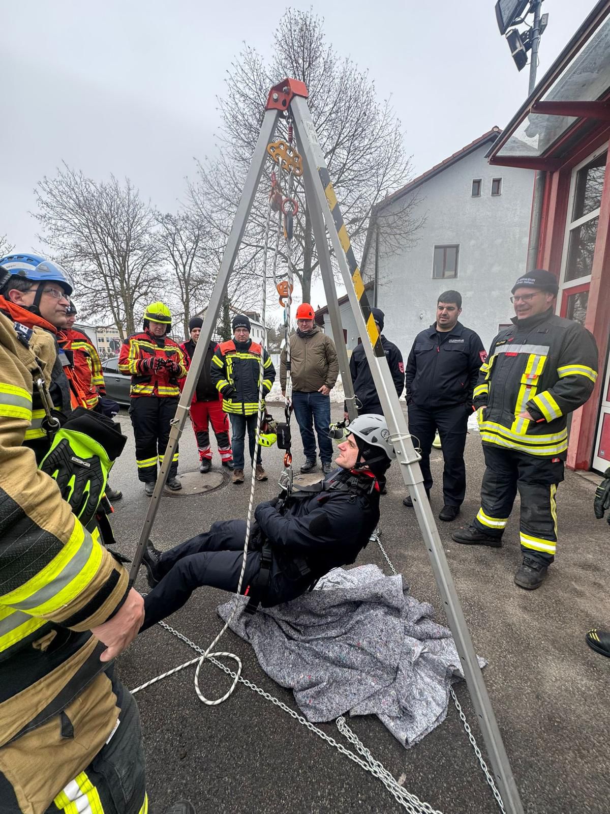 Zu einem fachlichen Austausch trafen sich Ausbilder der Absturzsicherung aus Niederbayern und der Oberpfalz. Nach der Begrüßung aller Teilnehmenden begann der inhaltliche Teil mit der Gefährdungsbeurteilung als erstem Schwerpunkt. Im zweiten Punkt wurden die Änderungen in der FwDV 1 thematisiert. Anschließend erfolgte die Vorstellung geschlossener Sicherungs- und Rettungssysteme. Nach der Mittagspause arbeiteten die Teilnehmenden in zwei Gruppen weiter. Dabei standen der Aufbau eines Flaschenzugs mit dem geschlossenen Sicherungs- und Rettungssystem sowie das Ablassen einer verunfallten Person im Mittelpunkt. Zum Abschluss wurden Reißversuche mit Karabinern, Bandschlingen und Dynamikseil durchgeführt. Teilnehmer der FF Neukirchen waren der Ausbilder für Absturzsicherung Markus Menacher, Leon Kraus und Markus Hiltl.