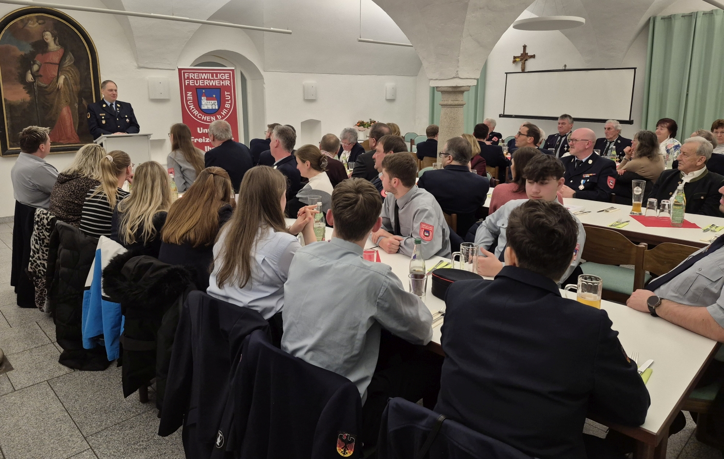 "Ehrenamt ist Herzenssache“ – so lebte der große Ehrenabend der FFW Neukirchen b. Hl. Blut für die Helden in Uniform von Dankesworten, Emotionen sowie Aufzeichnungen und gipfelte in der Ernennung von zwei Ehrenmitgliedern. „Es gibt Abende an denen man nicht über Einsätze, Fahrzeuge oder Zahlen spricht, und an denen es nicht um Technik oder Organisation geht. Heute stehen Menschen im Mittelpunkt, die über viele Jahre hinweg Verantwortung übernommen haben. Nicht weil es erwartet wurde, sondern weil es selbstverständlich für sie war“ eröffnete FFW-Vorsitzender Peter Staudacher die feierliche Veranstaltung, zu der er zahlreiche Ehrengäste im voll besetzten Katharinensaal begrüßte. In Anwesenheit der Feuerwehrführungskräfte auf Landkreis- und Inspektionsebene sowie von Albert Schiegl, dem ehemaligen Ausbilder an der Staatl. Feuerwehrschule Regensburg, wurden Bernhard Bachl und Markus Müller offiziell zum ‚Ehrenmitglied‘ ernannt. Es ist die höchste Auszeichnung, die der Feuerwehr-Verein vergeben kann. Dies ist kein Titel für einen bestimmten Abschnitt oder eine Einzelaktion, sondern ein Dank für ein ganzes Stück gelebtes Feuerwehrleben.