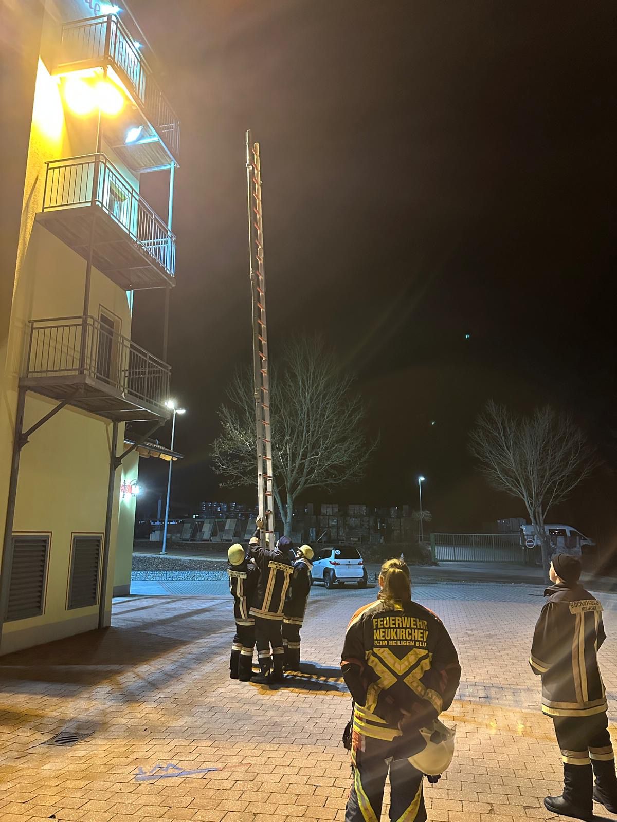 Die Ü16-Gruppe der Feuerwehr Neukirchen b.Hl.Blut führte kürzlich eine Übung zum Thema tragbare Leitern durch. Ziel der Übung war es, den sicheren und richtigen Umgang mit verschiedenen Feuerwehrleitern zu erlernen und zu festigen. Zu Beginn der Übung gab es eine kurze Theorieeinheit. Ü16-Leiter Markus Menacher erklärte den Jugendlichen die wichtigsten Grundlagen zum Einsatz von Leitern bei der Feuerwehr. Dabei ging es unter anderem um die richtige Vorgehensweise beim Aufstellen, das sichere Besteigen sowie wichtige Sicherheitsregeln. Unterstützt wurde er dabei von Julia Weinberger. Im praktischen Teil der Übung arbeiteten die Jugendlichen mit zwei verschiedenen tragbaren Leitern: der vierteiligen Steckleiter und der dreiteiligen Schiebeleiter. Zunächst wurde gezeigt, wie die Leitern korrekt zusammengebaut und aufgestellt werden. Anschließend konnten die Mitglieder der Ü16-Gruppe selbst üben, die Leitern richtig zu sichern und zu besteigen.